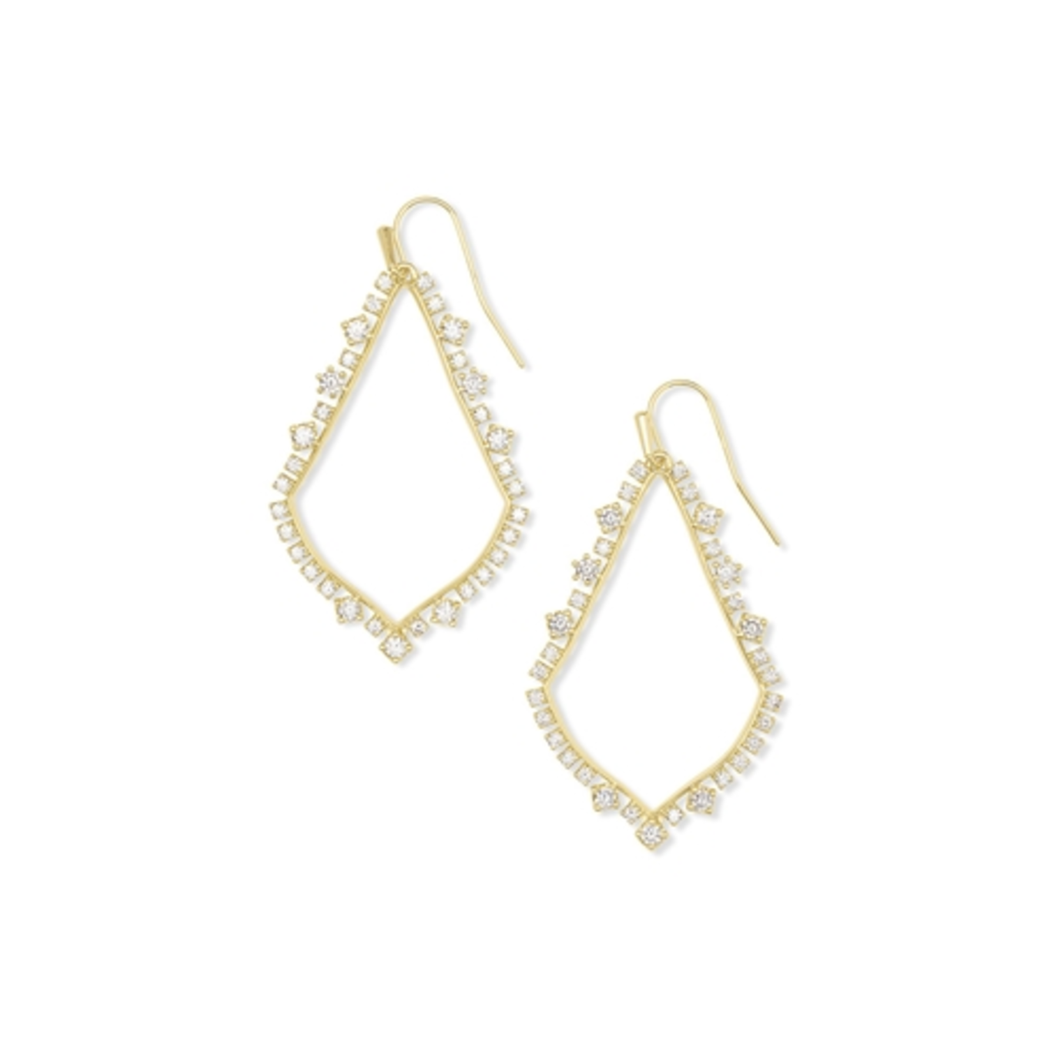 These loopy open drop earrings are framed in radiating crystals that provide twinkling filigree for the evening-ready style. 2 1/8" drop; 1 1/8" width French wire 14K gold plated over brass.