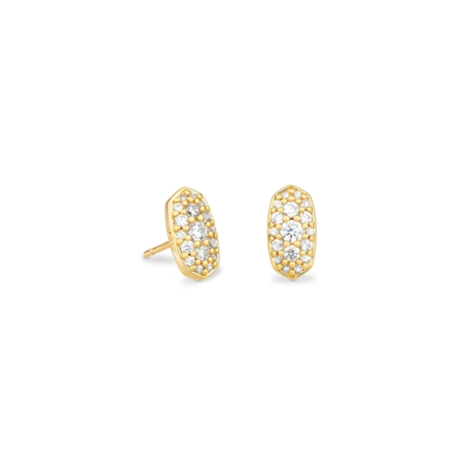 Sophisticated, simple, and set to sparkle from every angle. Meet the Grayson Gold Stud Earrings in White Crystal. A timeless pair of studs you can dress up, or down. .41"L x 0.22"W.