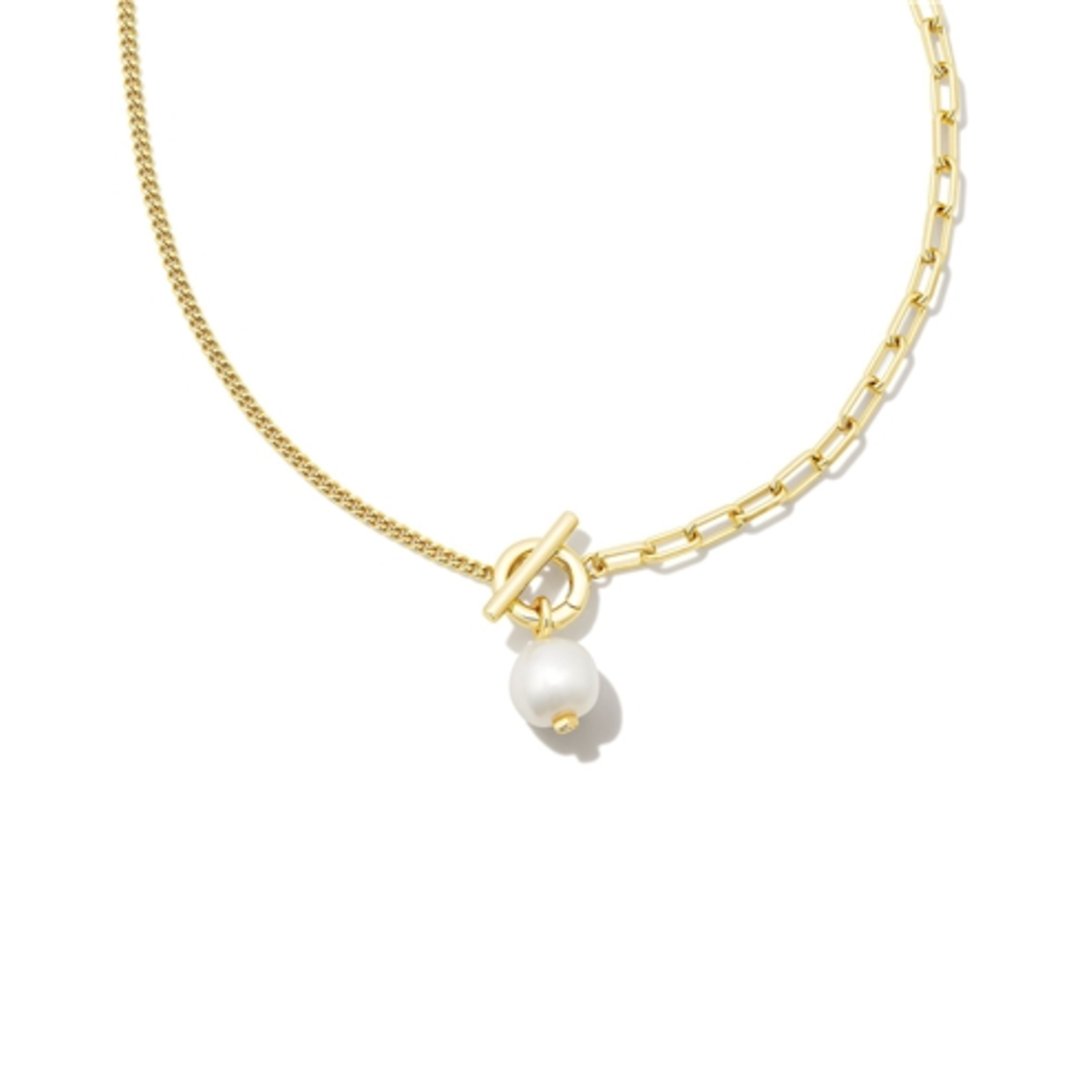Half bold link, half dainty chain, the Leighton Convertible Gold Pearl Chain Necklace in Freshwater Cultured Pearl truly gives you the best of both worlds. Plus, the freshwater cultured pearl pendant is removable, letting you mix up your look from day to night. Size: 17" chain, 0.39" L X 0.39" W Pendant.