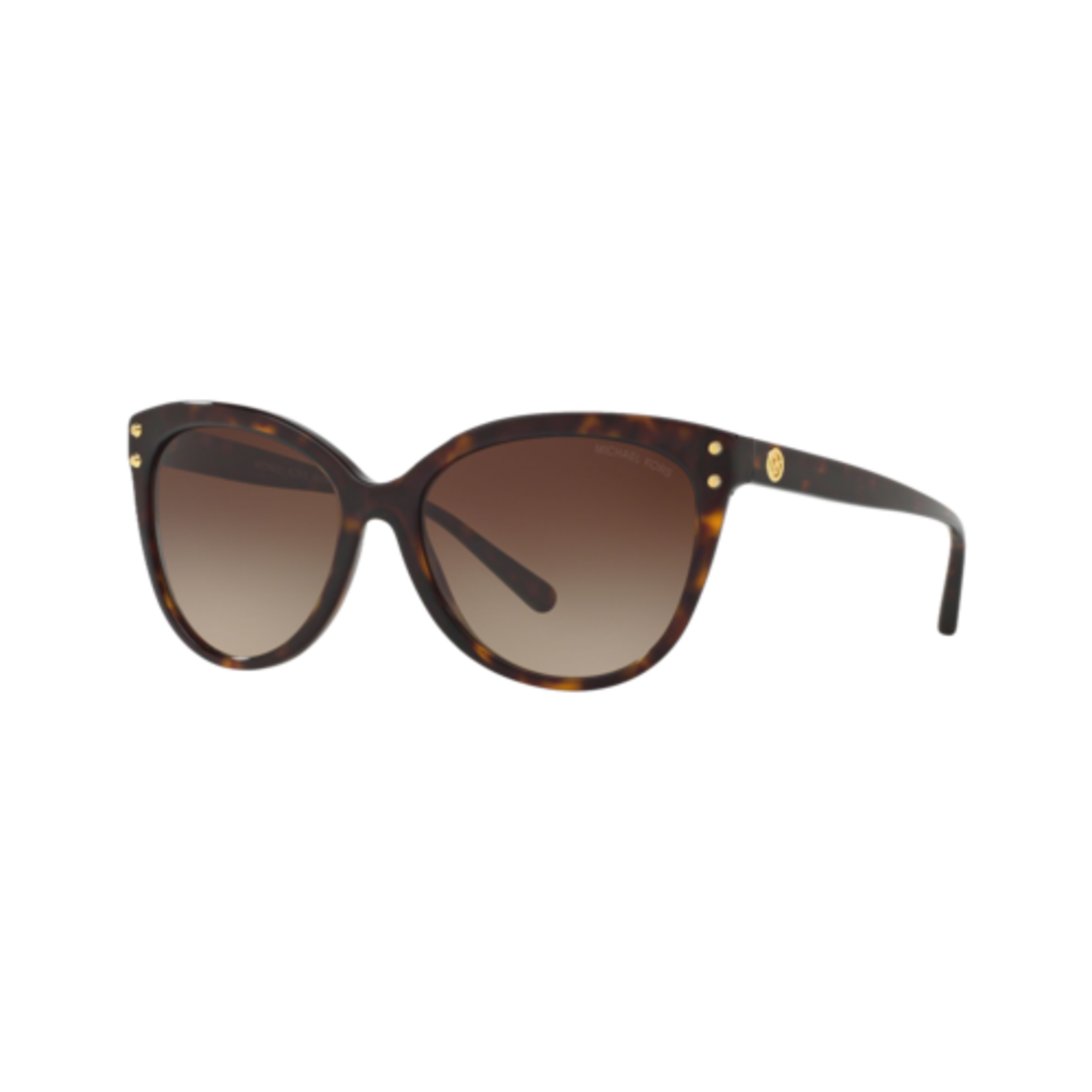 The right pair of shades can totally turn your day around! Give these trendy Michael Kors Jan Sunglasses a try. Made of smooth acetate with the Michael Kors logo at the temples and chic stud detailing. Eye size: 55; Frame: Dark Tortoise; Lens: Brown Gradient; Lens Material: Standard Plastic