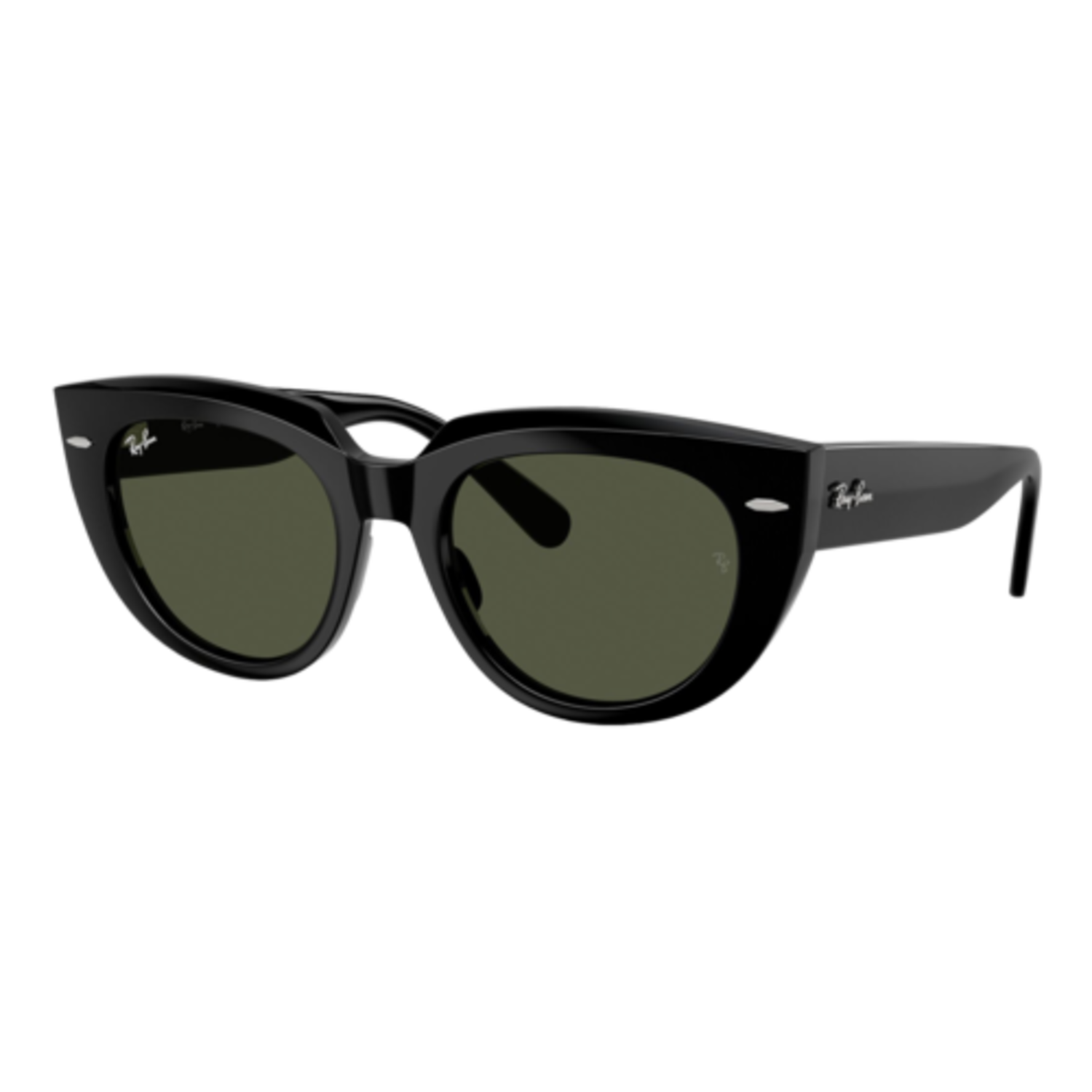 Ray-Ban Doreen sunglasses are a square frame shape with a vintage feel. These shades offer an updated look on retro style. Wear these square shades to add some flair to your everyday outfits and embrace the past while looking towards the future. Eye size: 52; Frame: Polished Black; Lens: G-15 Green; Lens Material: Standard Glass