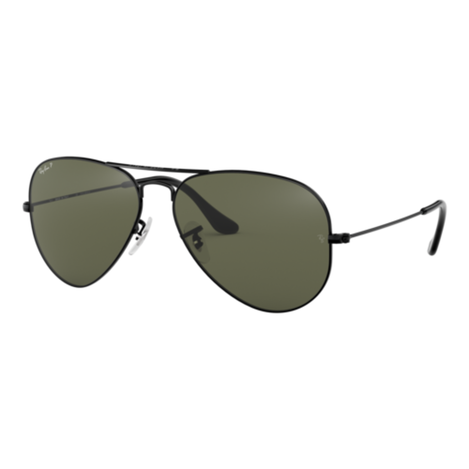 Currently one of the most iconic sunglass models in the world, Ray-Ban Aviator Classic sunglasses were originally designed for U.S. aviators in 1937. Aviator Classic sunglasses are a timeless model that combines great aviator styling with exceptional quality, performance and comfort. Eye size: 58; Frame: Polished Black; Lens: Polarized Green Classic G-15; Lens Material: Crystal Polarized Glass