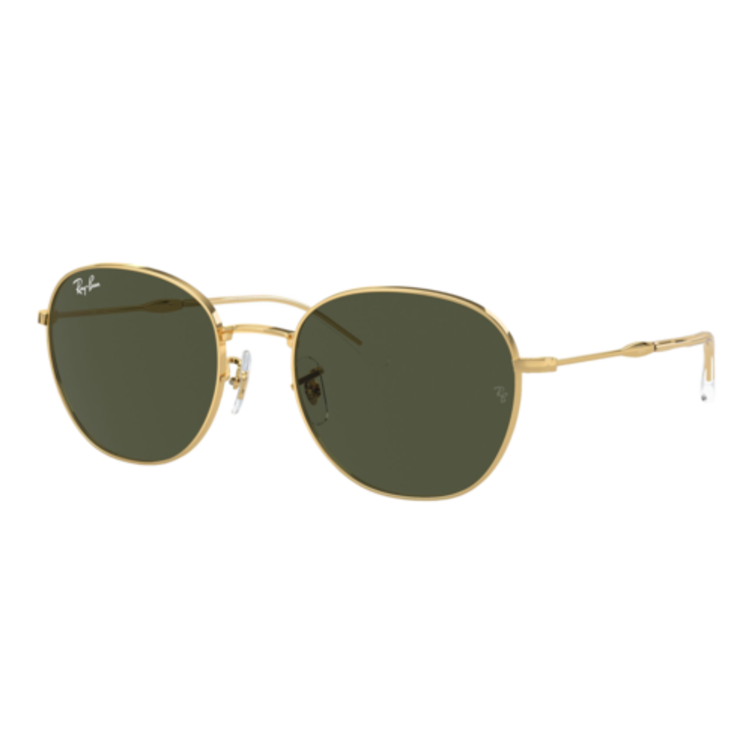 Designed in a round shape, these Ray-Ban sunglasses are rendered in a wire construction. Eye Size: 53; Frame: Polished Gold; Lens: Green Classic; Lens Material: Standard Glass