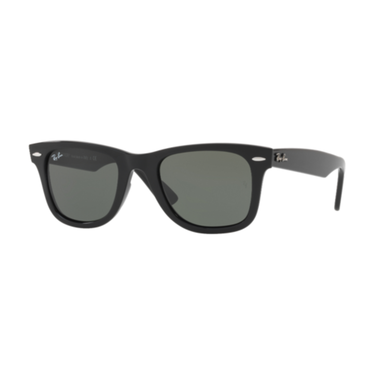 Instantly recognizable, totally irresistible - there's something special about the Wayfarer. The world's most famous shades are getting a distinctly laid-back upgrade and are designed to slide on fast and wear with total comfort. Just focus on what's important - feeling like a rockstar. Eye size: 50; Frame: Black; Lens: Green Classic G-15; Lens Material: Crystal Glass