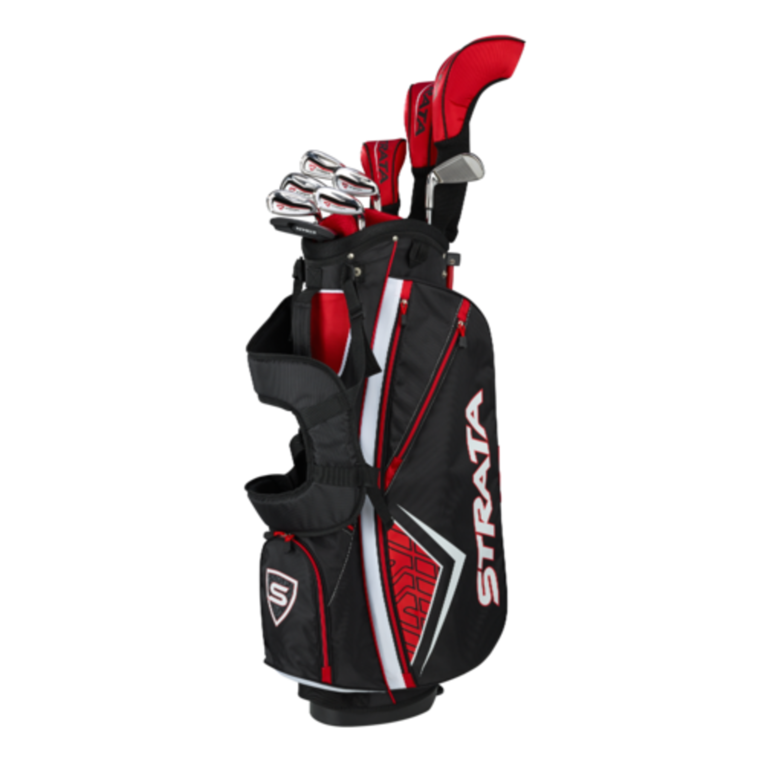 The Strata Plus Package Set is designed with distance and forgiveness technologies to help you easily hit accurate shots that go a long way. Now you have full course coverage from tee-to-green, giving you the confidence to hit good shots with every club in the bag. Set includes: Driver, 3 Wood, 5 Hybrid, 6 - 9 Iron, PW & SW, Putter, Stand Bag, and 3 Headcovers.