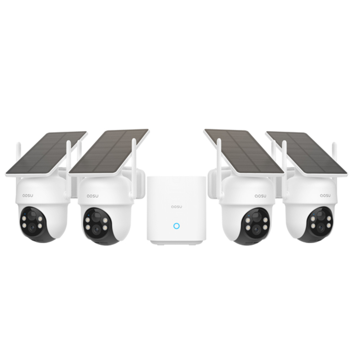 aosu C9C-4H 2K QHD 3.0-MP Dual-Band Wi-Fi Outdoor AI-Smart Solar Security Camera Kit with Panoramic PTZ, Auto-Tracking, and HomeBase Recorder (4 Cameras)
