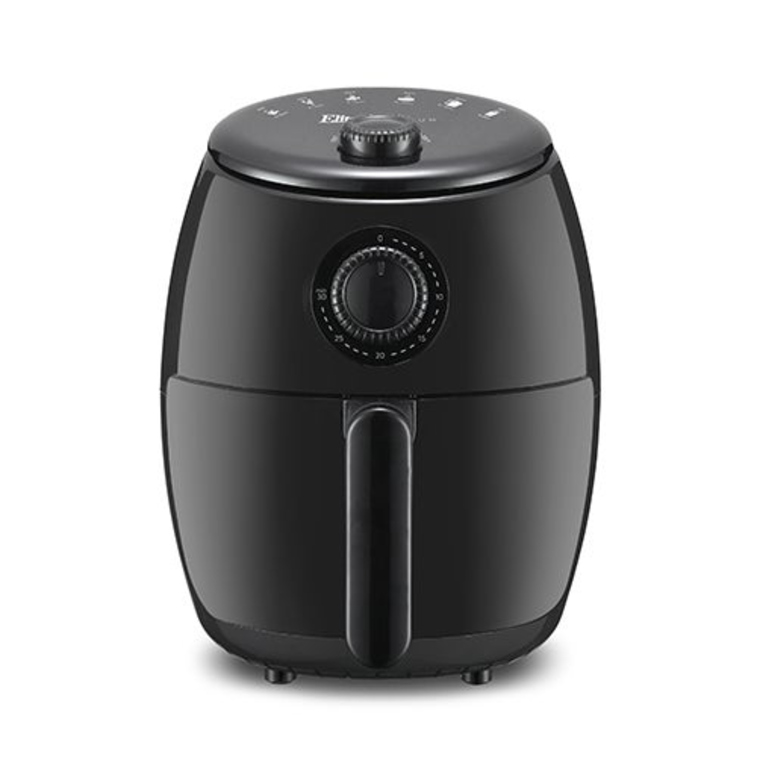 Fry cook grill roast or bake your favorite meals and snacks with ease. 2.1 Quart capacity. Prepare healthier meals with little to no oil. Cooks up to 1.5lbs of food per batch. Easy to use adjustable temperature and time controls. 30 minute timer automatically shuts off at the end of cooking cycle. Convention fan cooks food from 180F to 395F degrees. Safely remove food with cool touch handle. Dishwasher safe. ETL approved 1000-watt/120V. Removable frying rack for quick and easy clean up. Includes: Removable drawer pan. Removable rack.