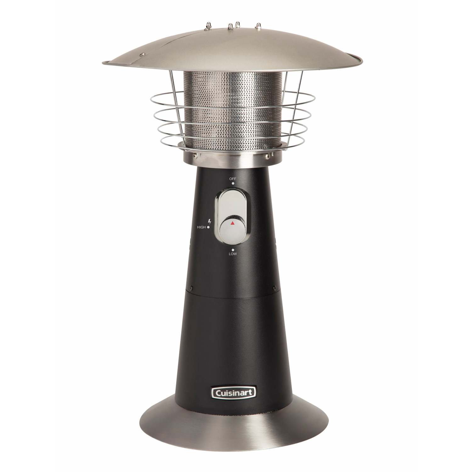 Use this tabletop patio heater for your outdoor entertaining area. Stay warm while dining with friends and family. Lightweight and small making it easy to take anywhere. Up to 11000 BTU output to heat about 300 square feet. Built-in anti-tilt automatic shutoff turns off if tipped over. Burner screen guard. Rotary dial adjustable heat control. Requires a 20lb propane tank (NOT included). Dimensions: 17" x 17" x 27".