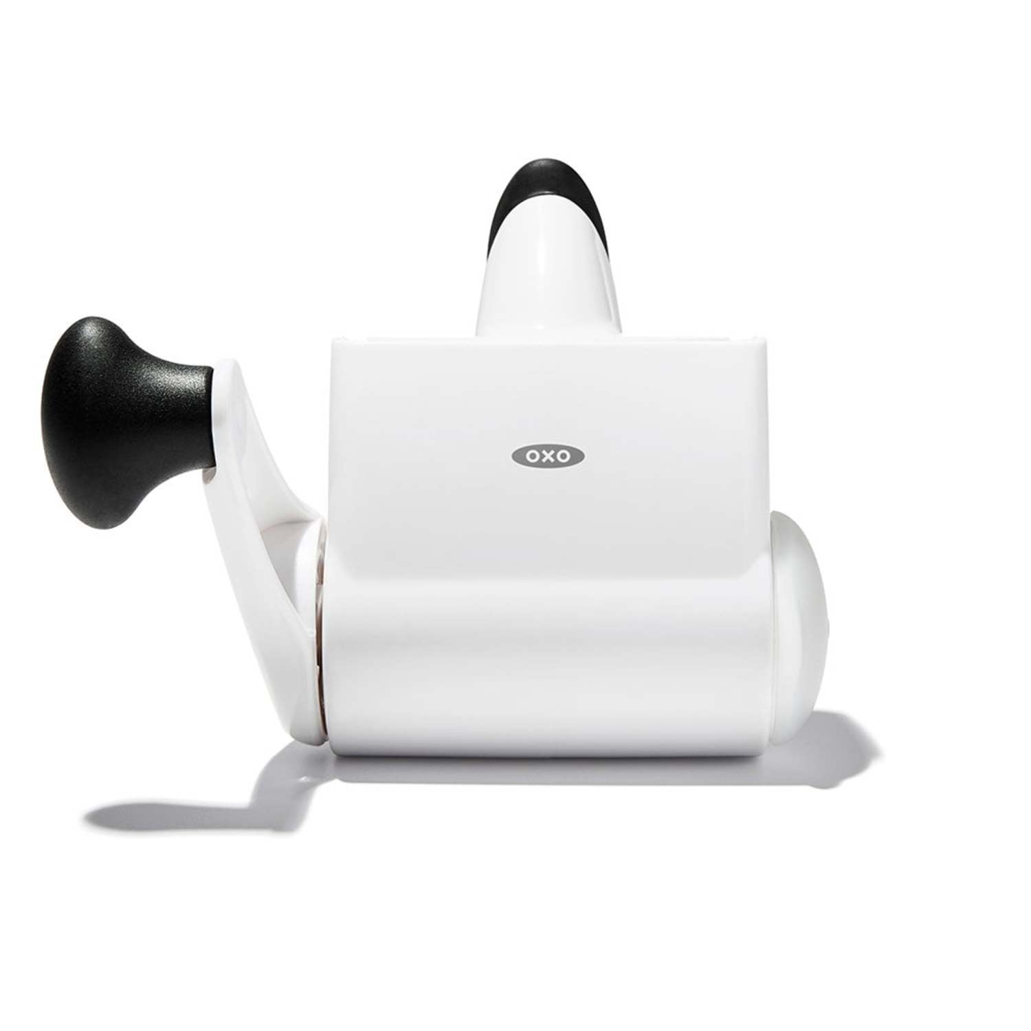 Grate cheese and save the rest for later in the same tool. Features compartment for storing ungrated cheese right inside. Silicone seal ensures cheese will not dry out while stored. Large barrel and sharp bi-directional stainless steel blades. Medium grating surface ideal for hard cheese chocolate nuts and more. Adjustable handle for right and left handed users. Dishwasher safe.