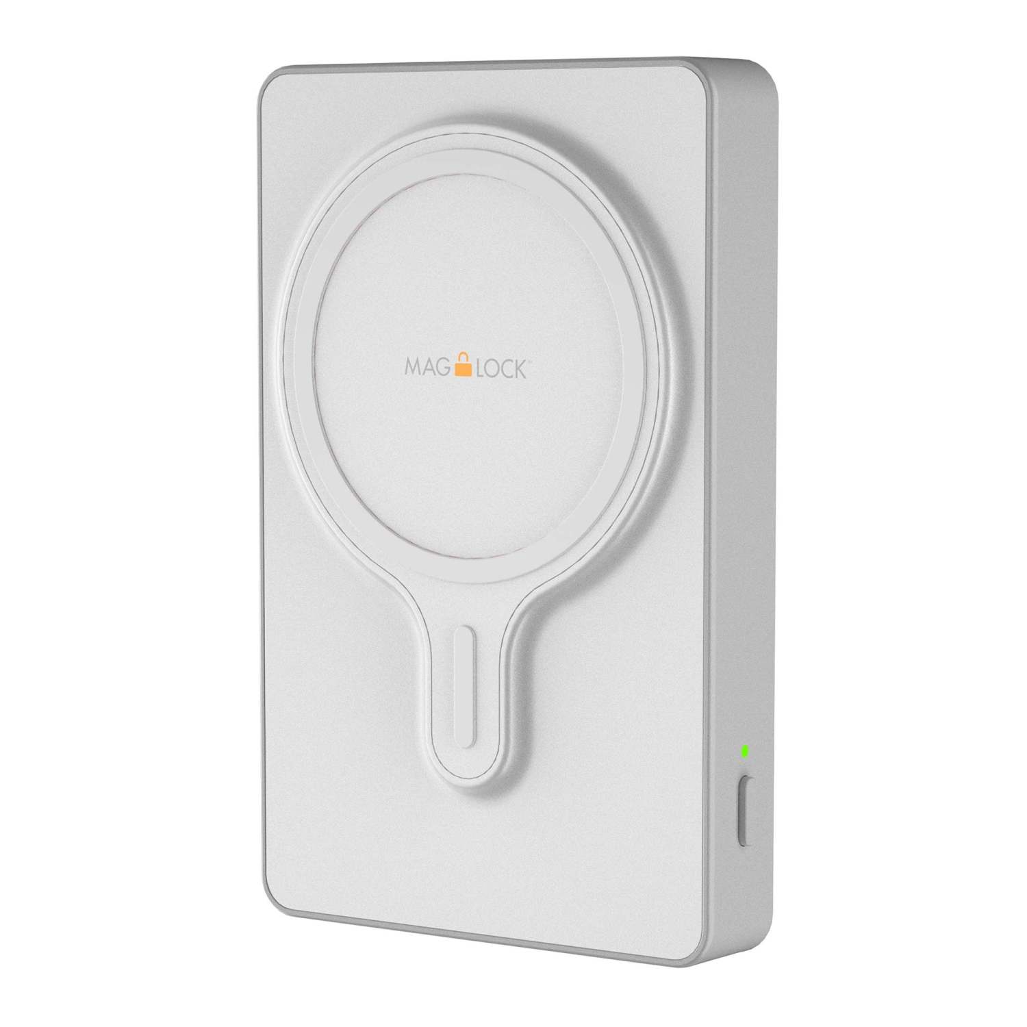Conveniently charge you MagSafe compatible phone with MagLock. MagSafe magnetically attaches to iPhones with automatic alignment. Wirelessly charge with 7.5W output. Charge via 18W PD USB-C port. Convenient metal viewing stand. Provides overs 32 hours of extra battery life. Built-in 6000mAh battery capacity.