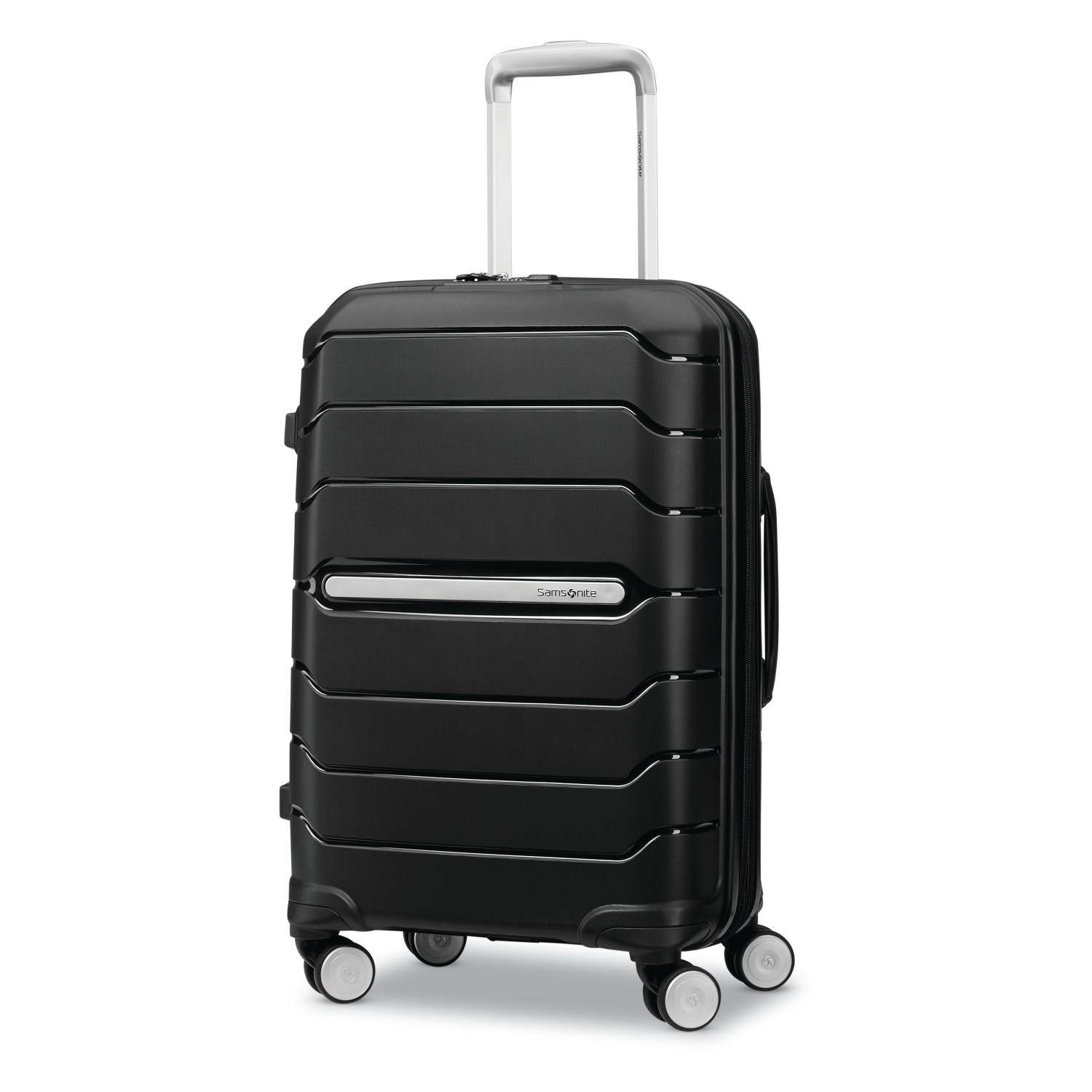 Freeform was created with strength and maneuverability in mind. Hardside Polypropylene mold is flexible and moisture resistant. Four spinner wheels move in 360-degrees. Double wheel design. Retractable handle locks in place. Interior cross straps secure luggage contents. Features a TSA compatible 3-dial combination lock to secure items. Expandable up to 2" to add more carrying space. Carry-on size to fit in most airline overhead compartments. Built-in ID tag and recessed metal logo. Dimensions: 21.25" x 15.25" x 10".