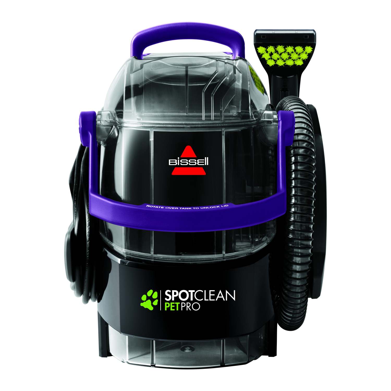 Combines a powerful suction and strong scrubbing for professional cleaning results. Removes tough dirt and stubborn pet stains from upholstery stairs carpets and more. 0.75 Gallon tanks holds more liquid for less stopping. Comes with special tools for pet stains. Stain trapper tool keeps pet and other liquid messes inside the tool. 5ft Long hose and 22ft power cord for hard-to-reach areas. Portion of sales go to the Bissell Pet Foundation. Includes: 3" Tough stain tool. Stain Trapper tool. Trial size of Bissell Professional Pet Formula.