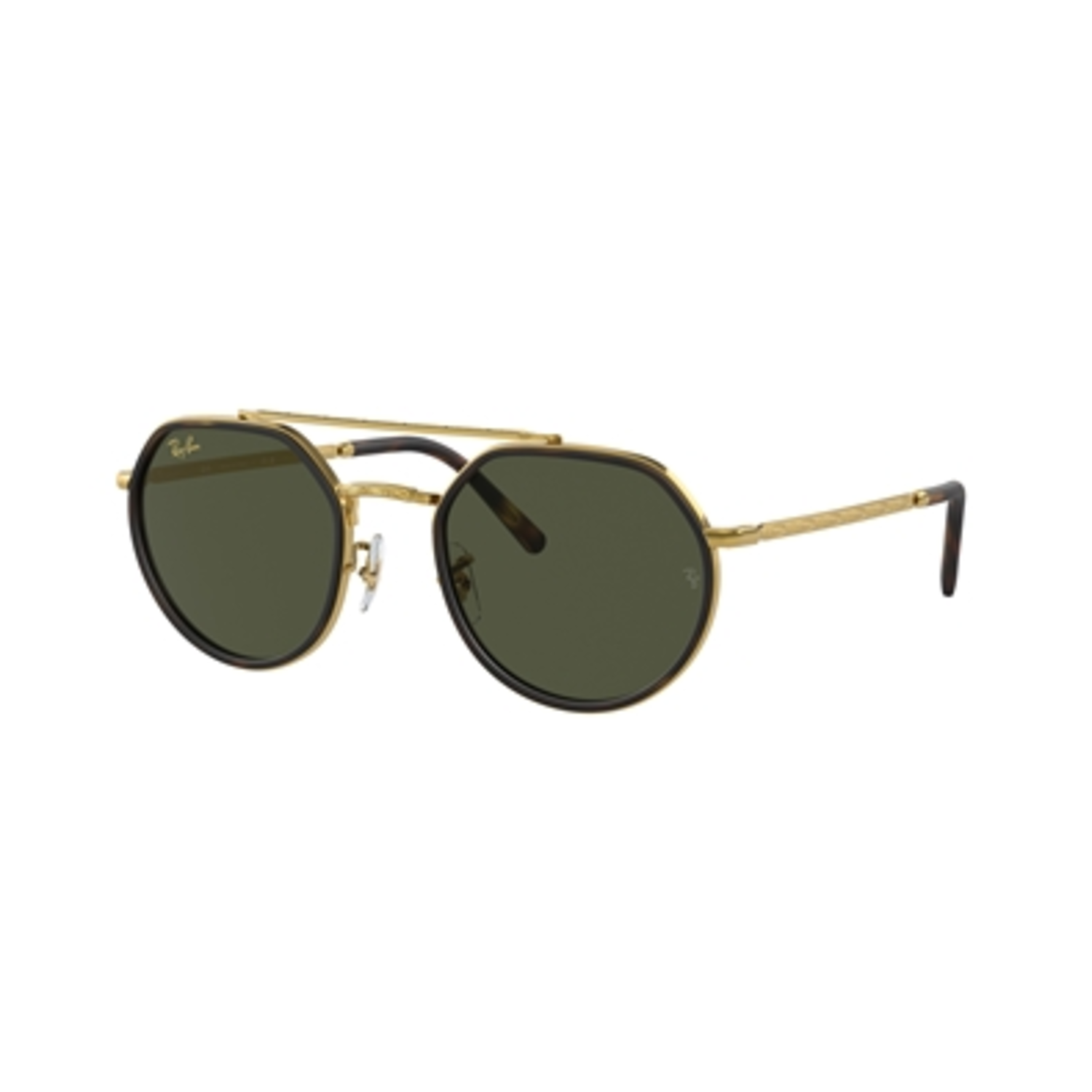 Inspired by 2021's Jack, this irregular rounded silhouette strides forward with a brave twist of texture. A flat double bridge and plastic front rims contrast with the delicate engraved metal frames. Irregular rounded frames with a flat double bridge, plastic front rims and premium engravings to the bridge and temple. Available in a gold metal tone fame with green lenses.