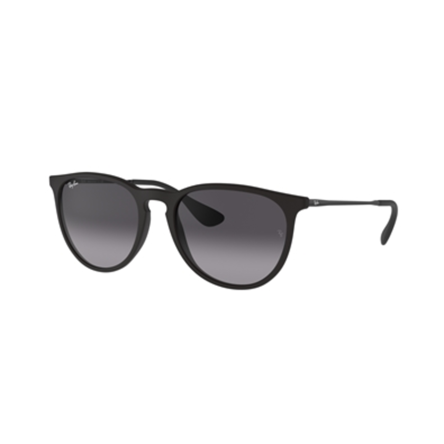 Featuring both classic and bright rubber fronts, metal temples and tone-on-tone temple tips, Ray-Ban Erika sunglasses will set your look apart from the crowd. A non-polarized grey gradient lens and Matte Black frame. The over-sized Round Sunglasses shape provides extra coverage and 100% UV protection, while the soft bridge adds a twist to this design.