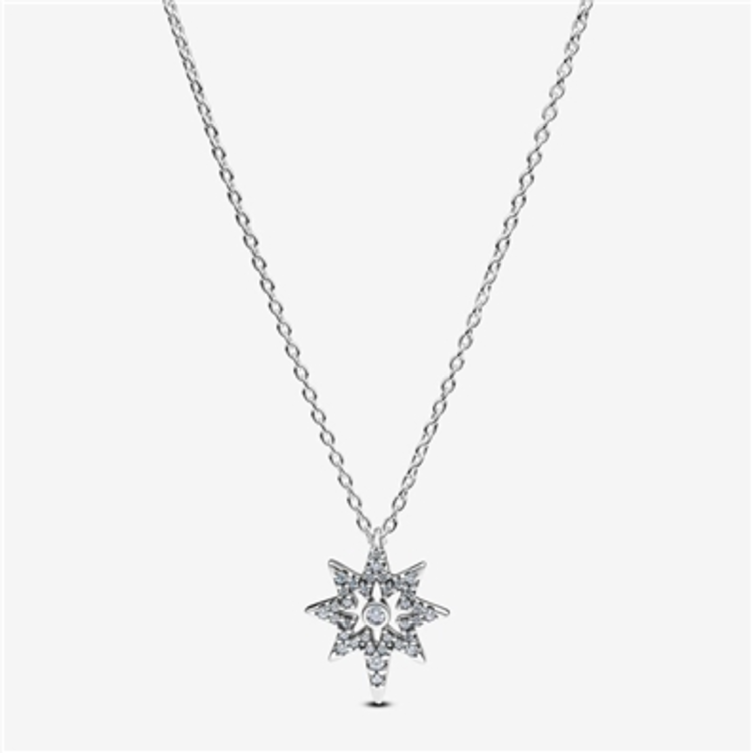Light up your look with our North Star Pendant Necklace in sterling silver. Featuring the symbolic design of the Polaris shining with clear cubic zirconia from a classic cable chain, this necklace adds a celestial glow to your look with a layer of meaningful symbolism. The chain can be adjusted three different lengths to suit your style. Serving as a compass in uncertain times, the North Star guides us to brighter tomorrows and represents our hopes and dreams. Wear to add sparkle to any festive look or gift it to the shining star of your life.