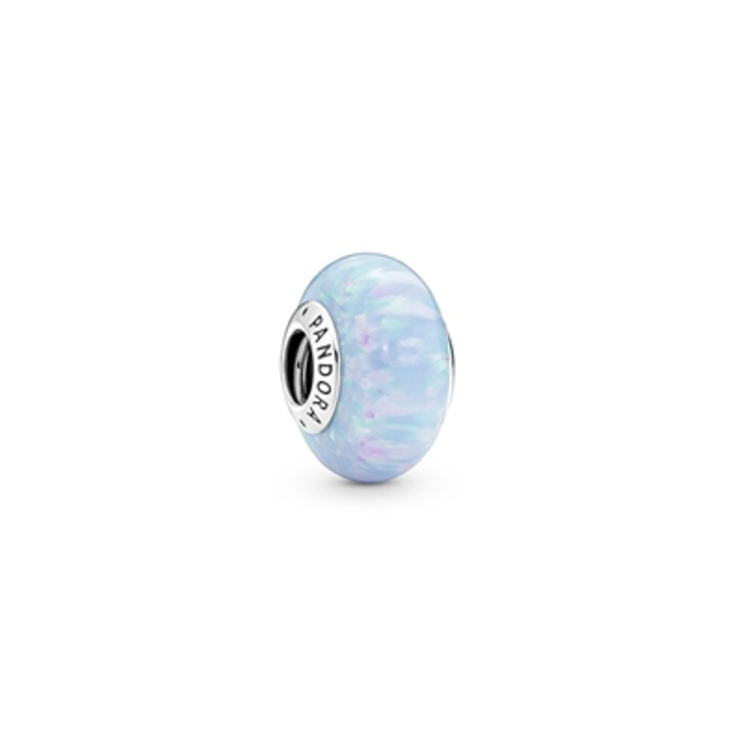Inspired by shimmering blue ocean waves reflecting the summer sun, this beautiful lab-created opal charm is the perfect addition to your summer look. It features a sterling silver core with the Pandora logo on one side, surrounded by a lab-created opal shimmering with soft colors and glittering streaks. Each stone is unique, just like you.