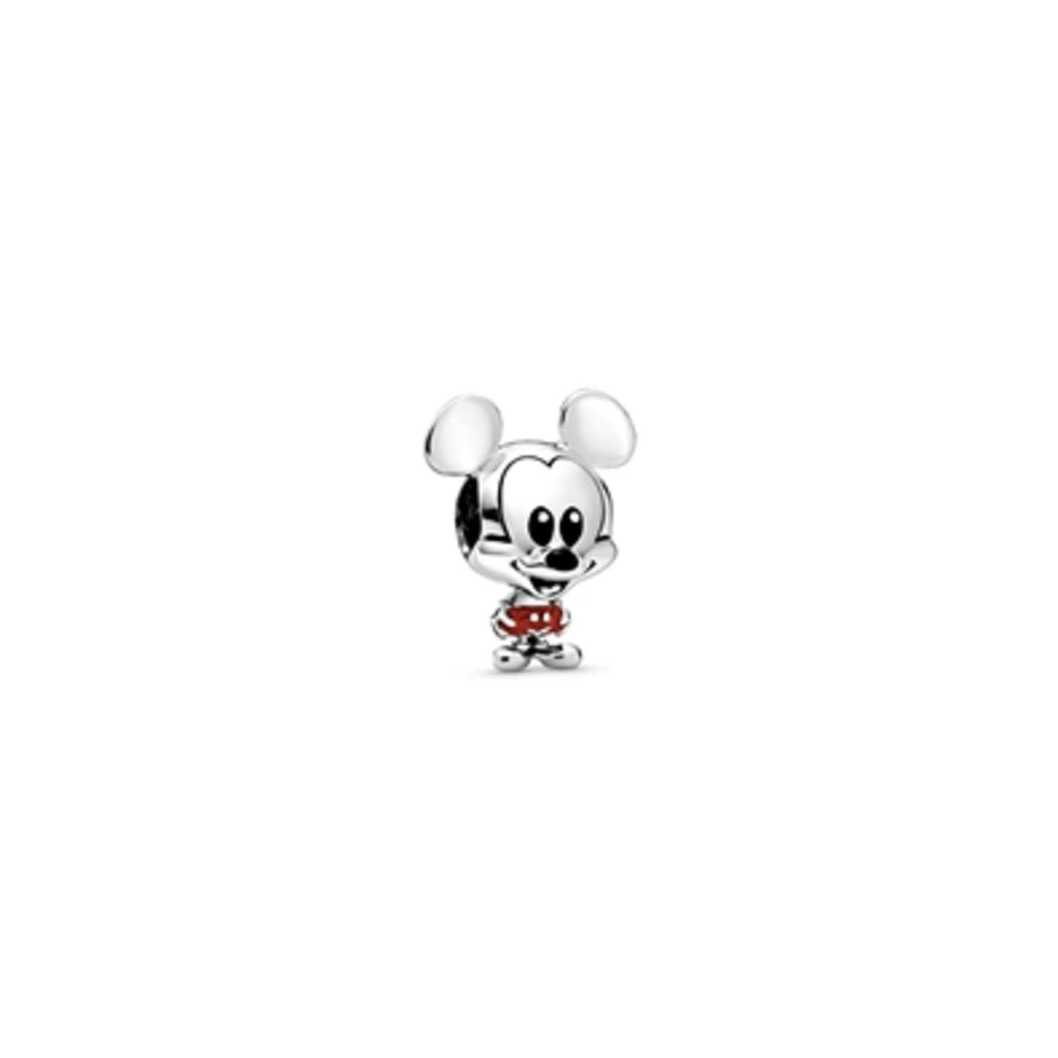 Collect one of your childhood icons with this hand-finished Disney Mickey Mouse charm from the Disney x Pandora Favorites series. Created in collaboration with Disney's in-house toy design team, the mouse's design is centered on his enlarged ears and head and smaller body that highlights his smiling face. The Mickey Mouse sterling silver charm features red and black hand-applied enamel details. Wear it with your favorite Disney x Pandora charms to create your own style adventure.Compatible with Pandora Moments Bracelets.