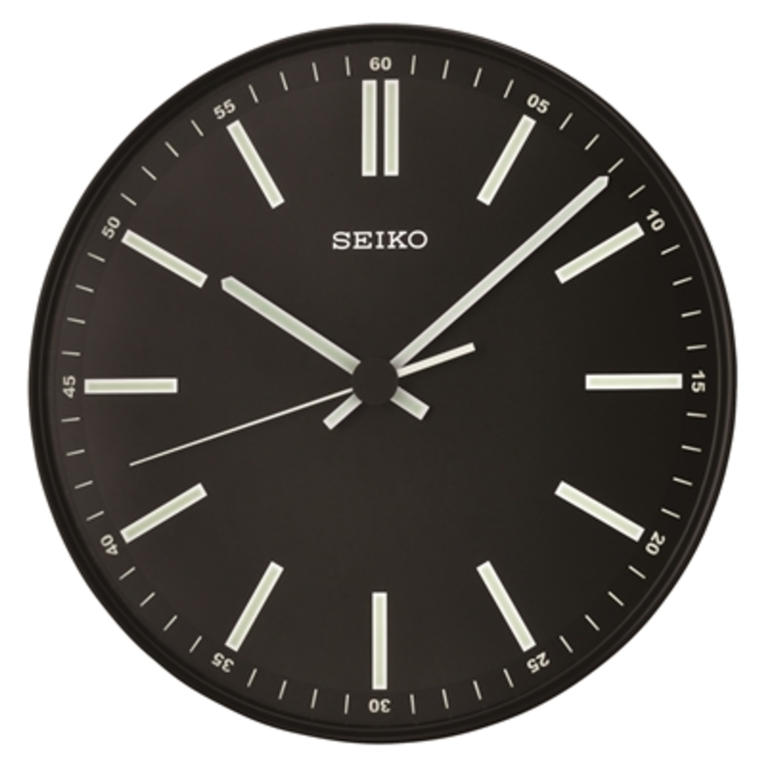 This simple, ultra-modern wall clock brings simplistic style to any space. It features a round black plastic frame with easy-to-read white markers.