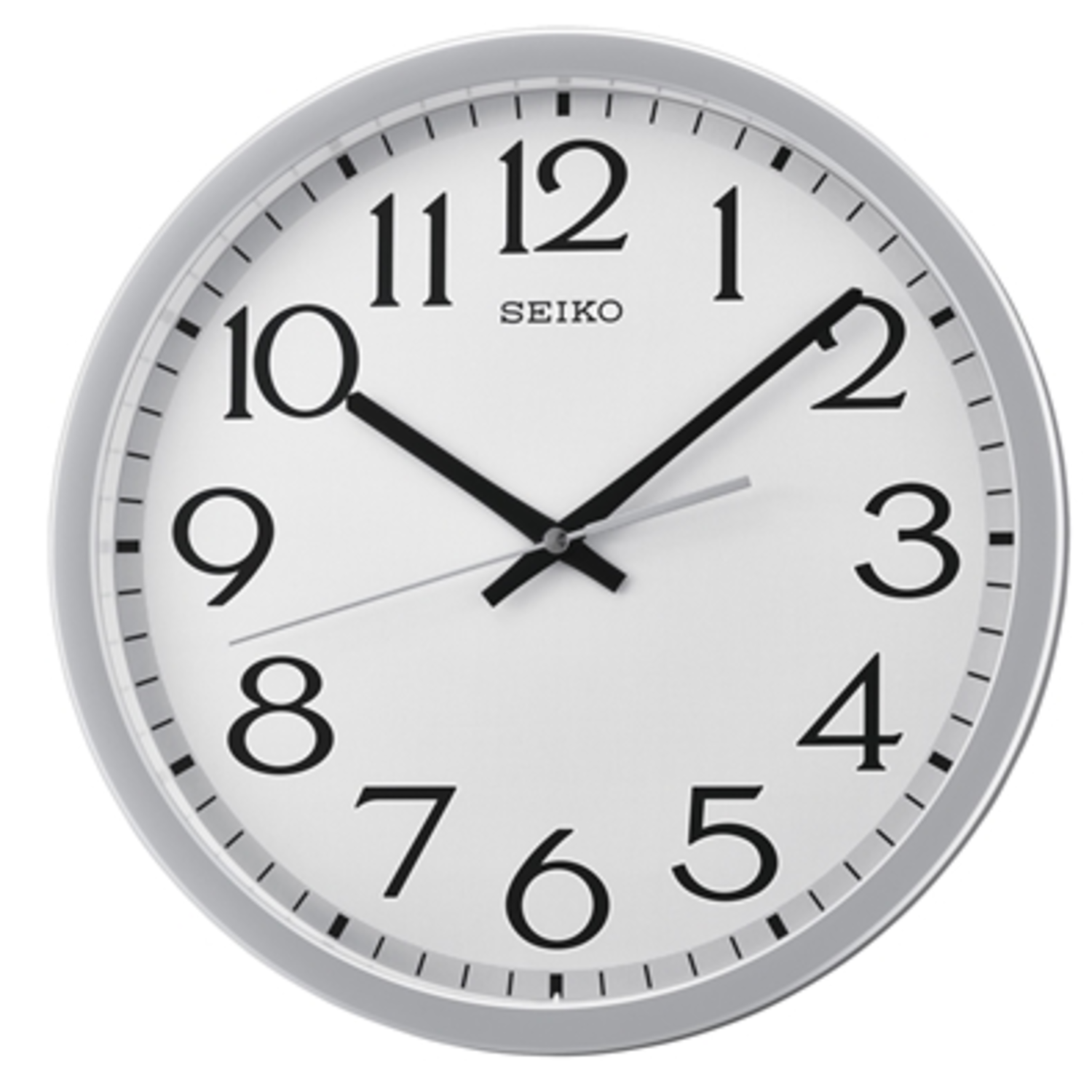 A tasteful design, this wall clock is crafted with an metal dial and quiet sweep second hand. The silver case and high contrast numerals allow for easy readability across a room.