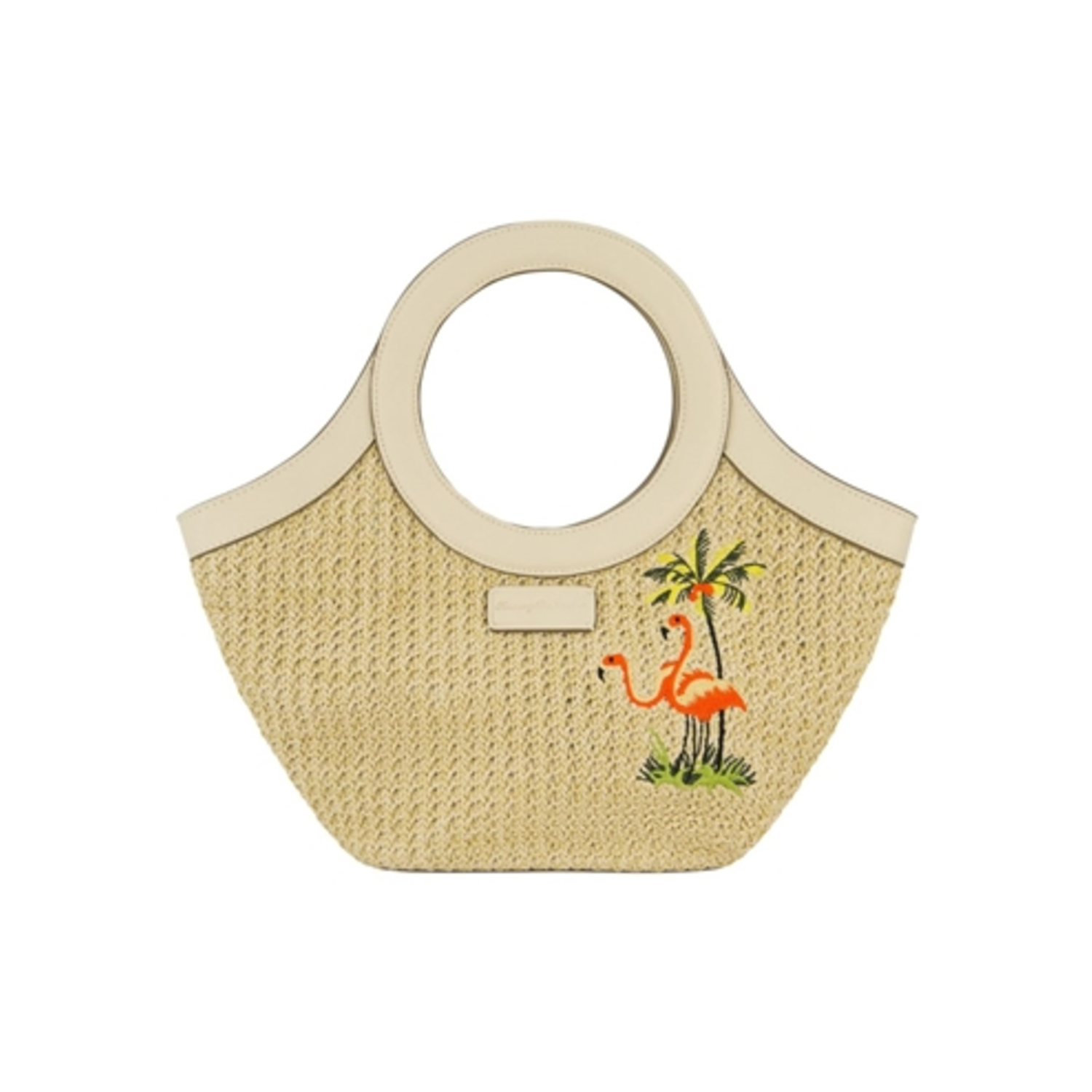 FLAMINGO EMBROIDERY TOTE, CREAM