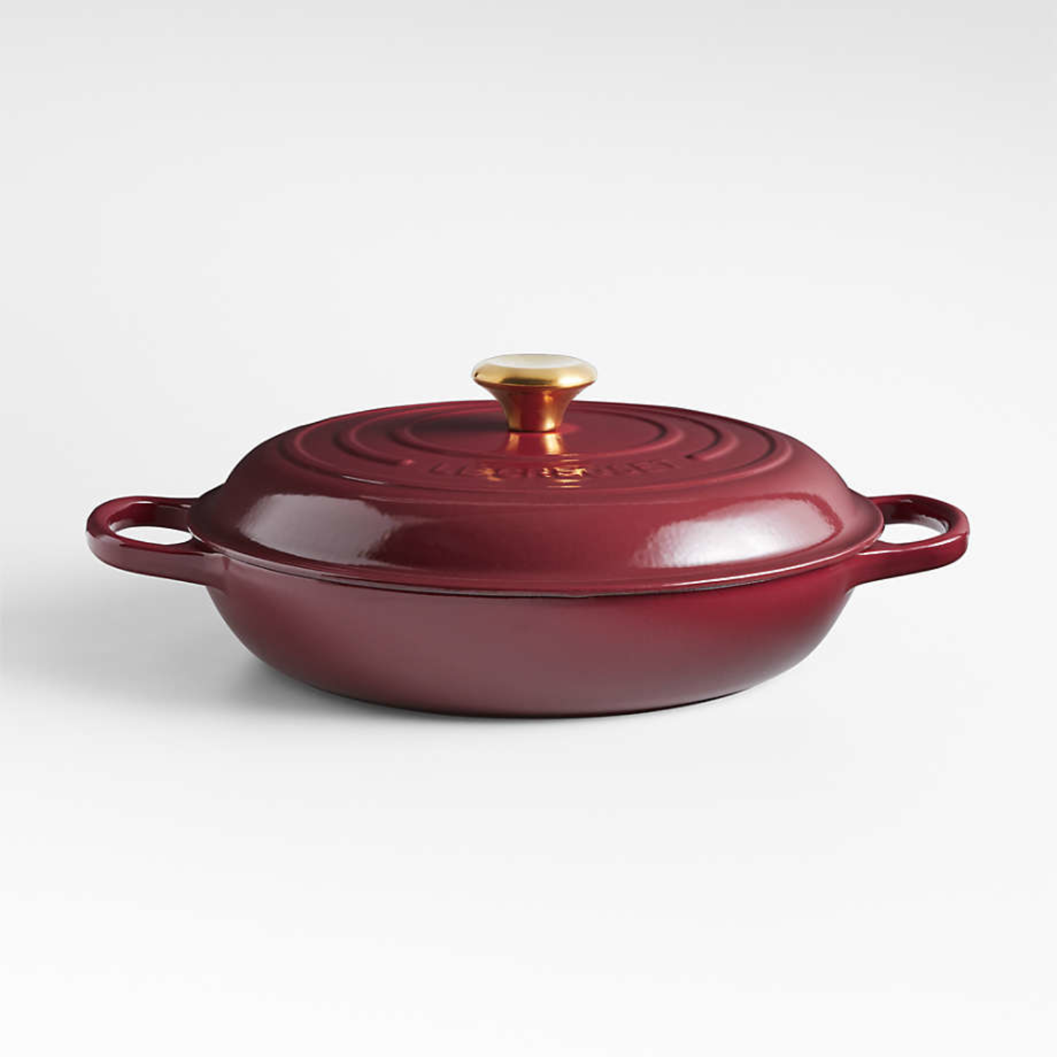 Le Creuset’s enamelled cast iron Braiser is the ideal piece of cookware to deliver deliciously tender dishes. This versatile piece of cookware can be used for braising, which consists of first searing meat and vegetables at a higher temperature, before slow cooking them in aromatic liquid. The Braiser’s shallow based and domed lid make it perfect for this type of cooking, locking in heat and moisture inside the pot.